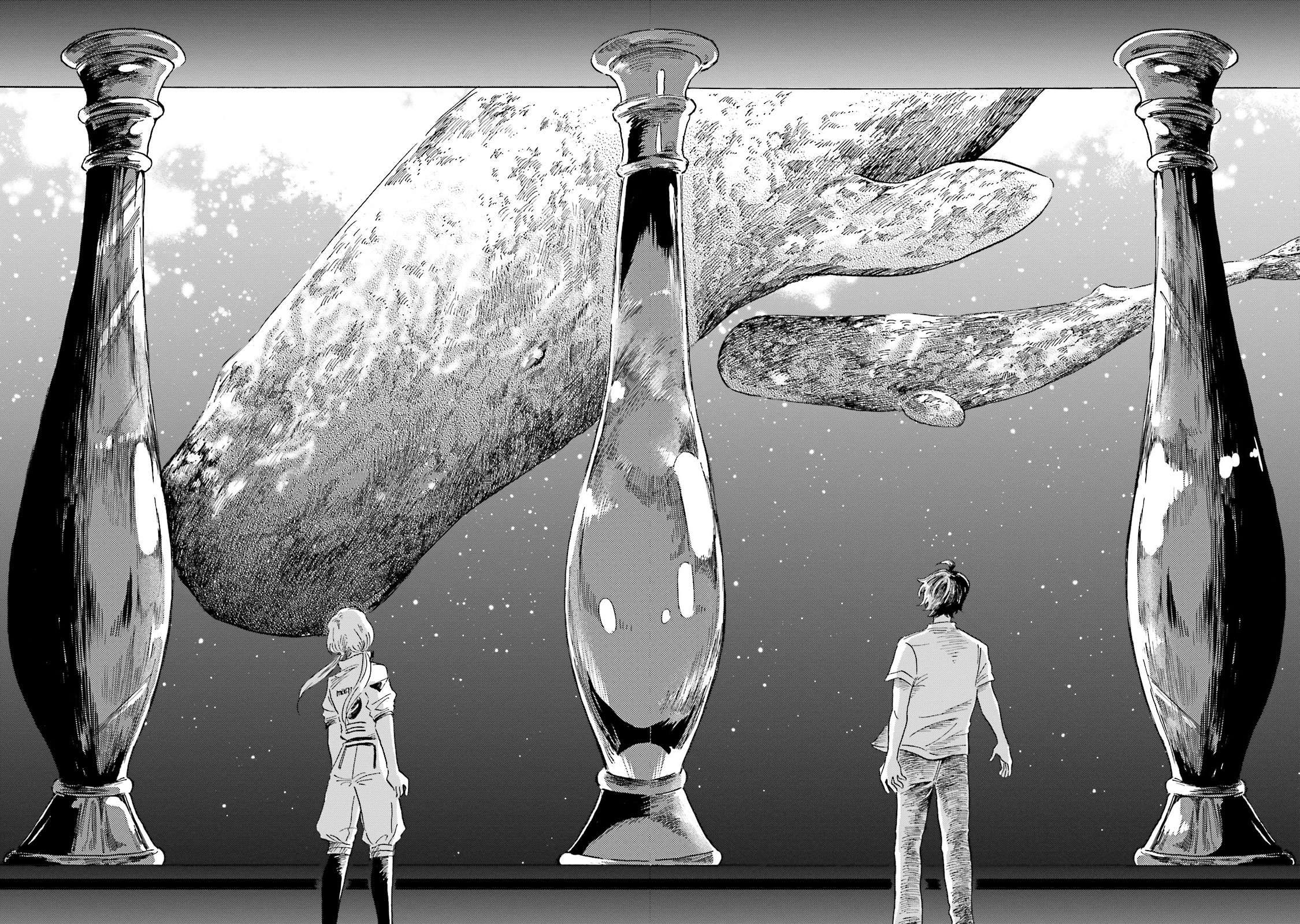 I'd say the paneling is a godtier and also very unique too. Sometimes the artist trying to make a continuous double page like that. It's very fun to see sometimes. And because this is a marine biology manga, of course, the artist is going to draw the creatura as detail as possible, and they're doing a very good job at delivering that.