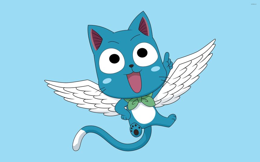 Happy is a cat-like creature with wings. He is Natsu's best friend and inseparable from him. Happy can't fight, but he is able to fly and carry Natsu or other Guild members in desperate situations. He likes to tease others and is commonly a source of comedy in the series.