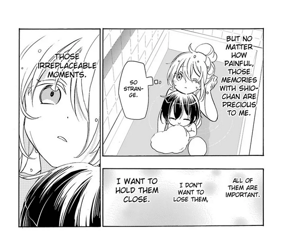 If you're still reading this review and uncertain about whether or not to read Happy Sugar Life, I would implore you to at least check it out. It improves linearly, so if you enjoy the beginning, you will probably love the end; and if you feel apathetic about the beginning, you may still like it by the end. It is a manga that will undoubtedly make you think, make you feel, and make you question. It's a manga that has entranced me for years on end now with its central idea, an idea that is probably best summed up by the musings on the back cover of the final volume: